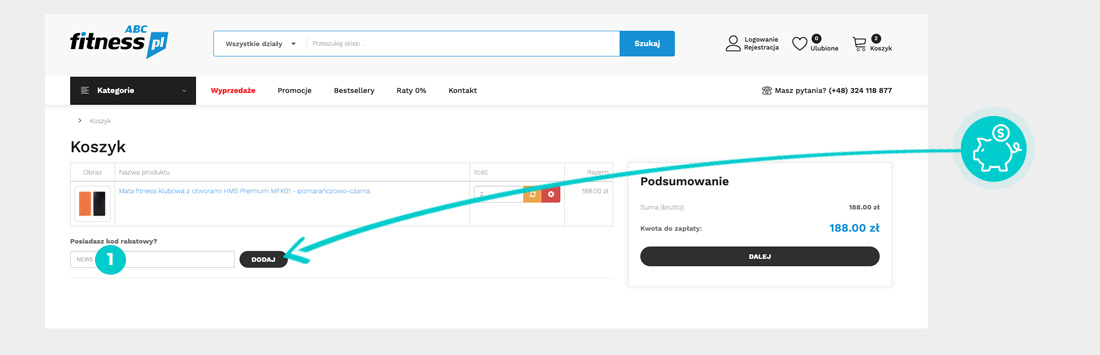 Nie wiesz dokładnie, jak działają kody rabatowe na ABCfitness.pl? Oto jak szybko i łatwo zastosować kody rabatowe podczas dokonywania zakupu: