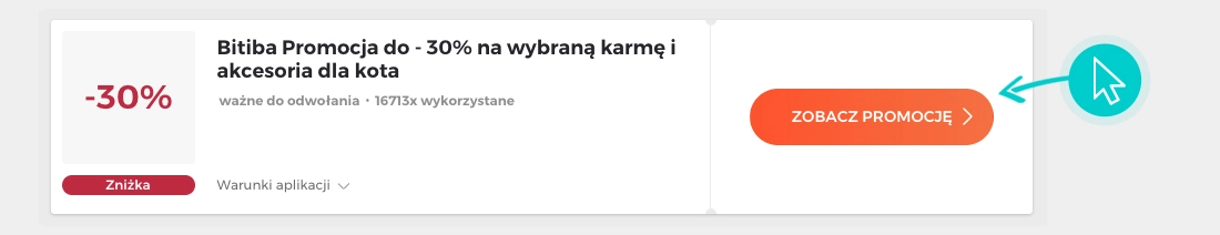Wybierz konkretny rabat Bitiba na naszej stronie i kliknij przycisk "Zobacz promocje". Zostaniesz automatycznie przekierowany bezpośrednio do oferty specjalnej w sklepie internetowym Bitiba.pl, w którym możesz kupić produkt ze zniżką.