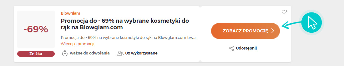 Wybierz konkretny rabat z Blowglam na naszej stronie i kliknij przycisk "Zobacz promocję". Zostaniesz automatycznie przekierowany do oferty promocyjnej w sklepie internetowym Blowglam.com, gdzie możesz kupić wybrany produkt ze świetną zniżką.