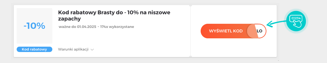 Wybierz na naszej stronie konkretny kod rabatowy, którego chcesz użyć w sklepie internetowym Brasty.pl. Następnie kliknij pomarańczowy przycisk "Wyświetl kod".