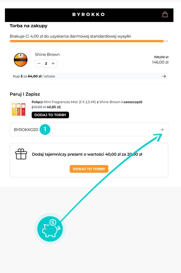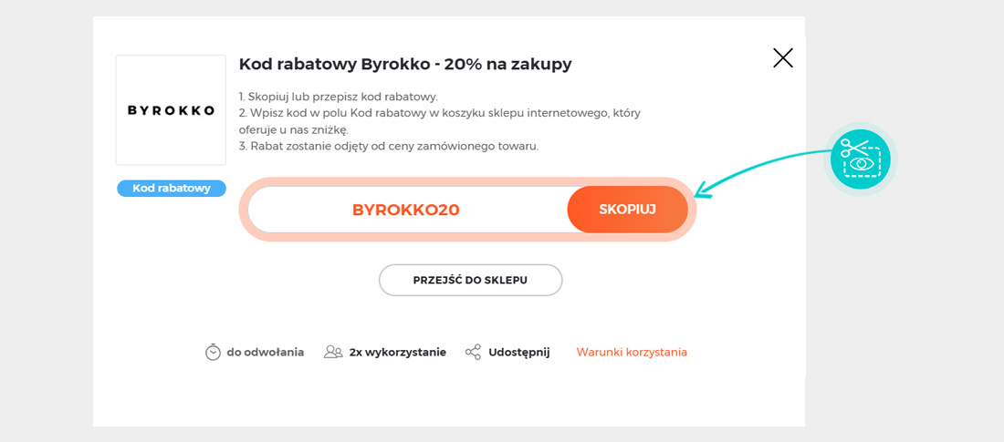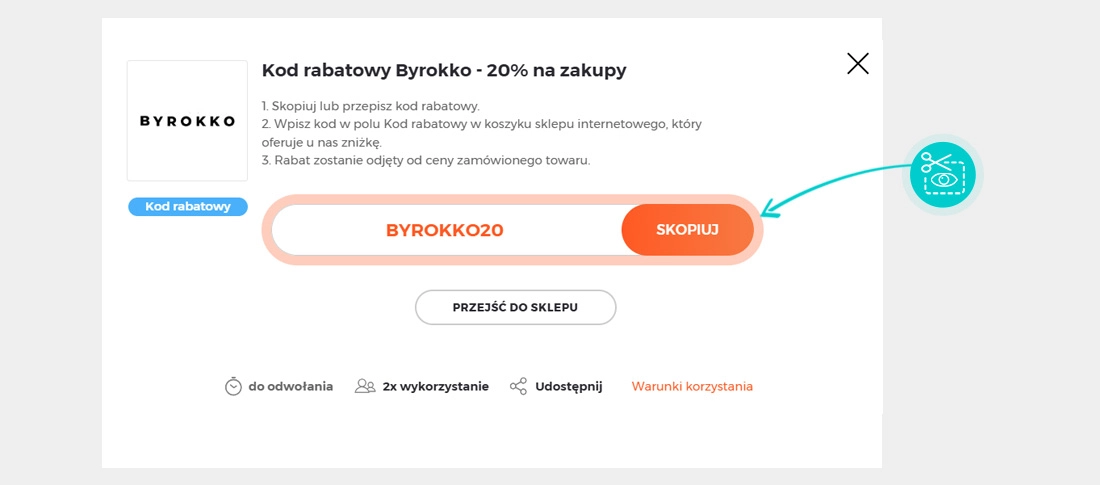 Skopiuj lub zapisz kod rabatowy i kliknij przycisk "Przejdź do sklepu". Nastąpi przekierowanie bezpieśrednio do sklepu internetowego Byrokko.com.