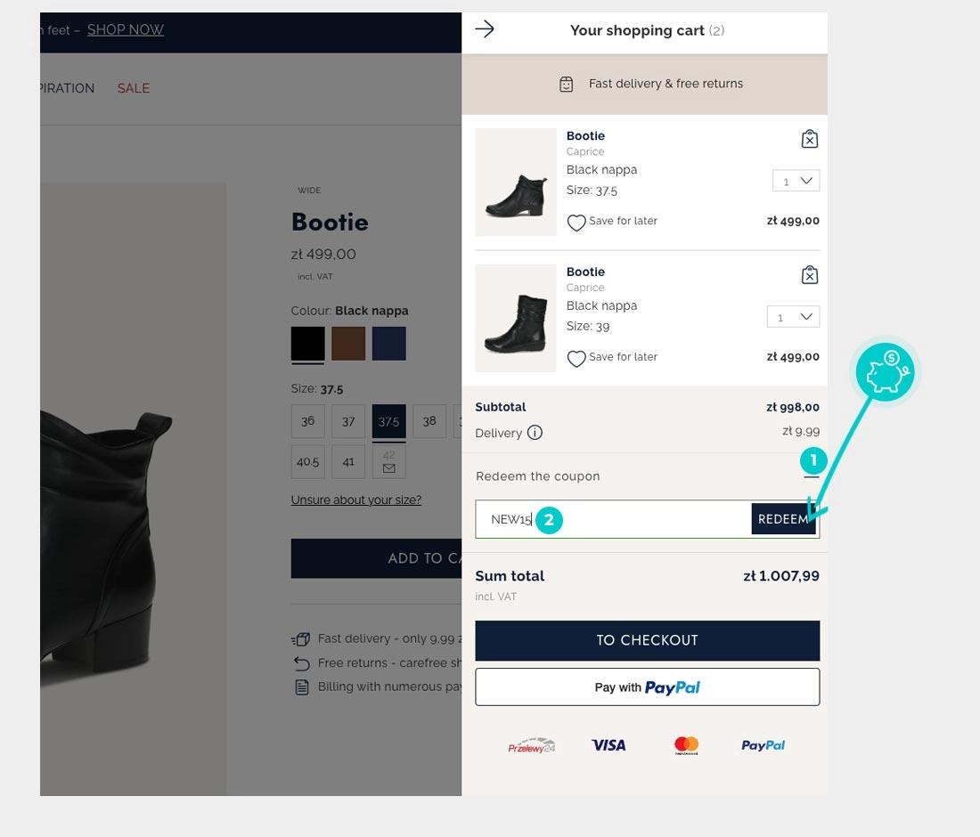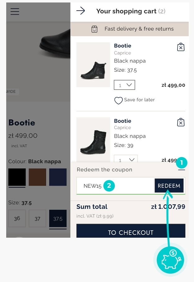 Nie wiesz dokładnie, jak działają kody rabatowe na Capriceshoes.com? Oto jak szybko i łatwo zastosować kody rabatowe podczas dokonywania zakupu: