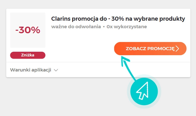 Wybierz konkretny rabat Clarins na naszej stronie i kliknij przycisk "Zobacz promocje". Zostaniesz automatycznie przekierowany bezpośrednio do oferty specjalnej w sklepie internetowym Clarins.pl, w którym możesz kupić produkt ze zniżką.