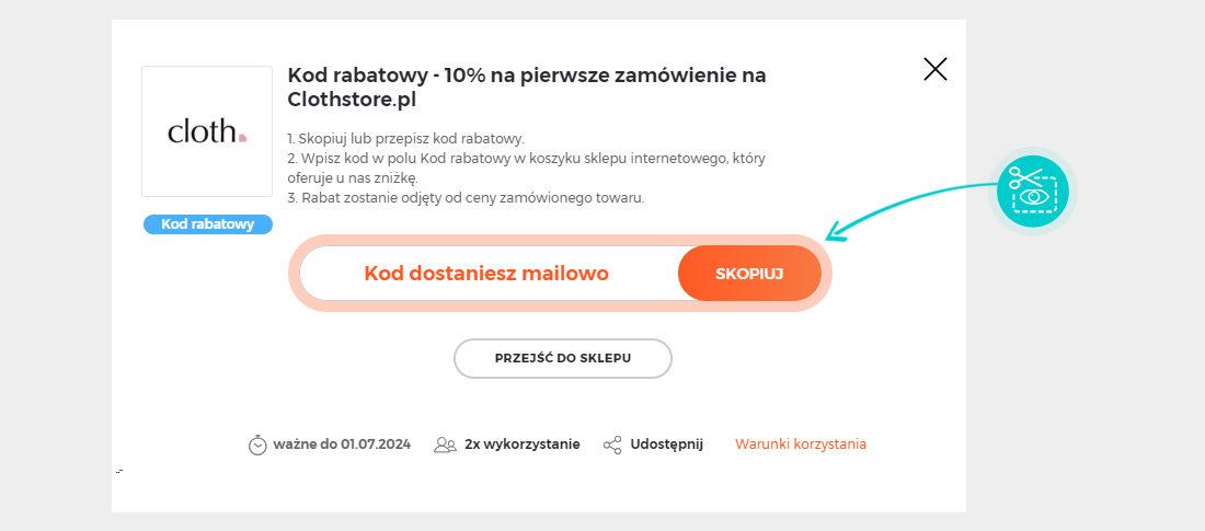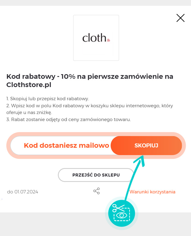 Skopiuj lub zapisz kod rabatowy, a następnie kliknij przycisk "Przejdź do sklepu". Zostaniesz automatycznie przekierowany do sklepu internetowego Clothstore.pl.
