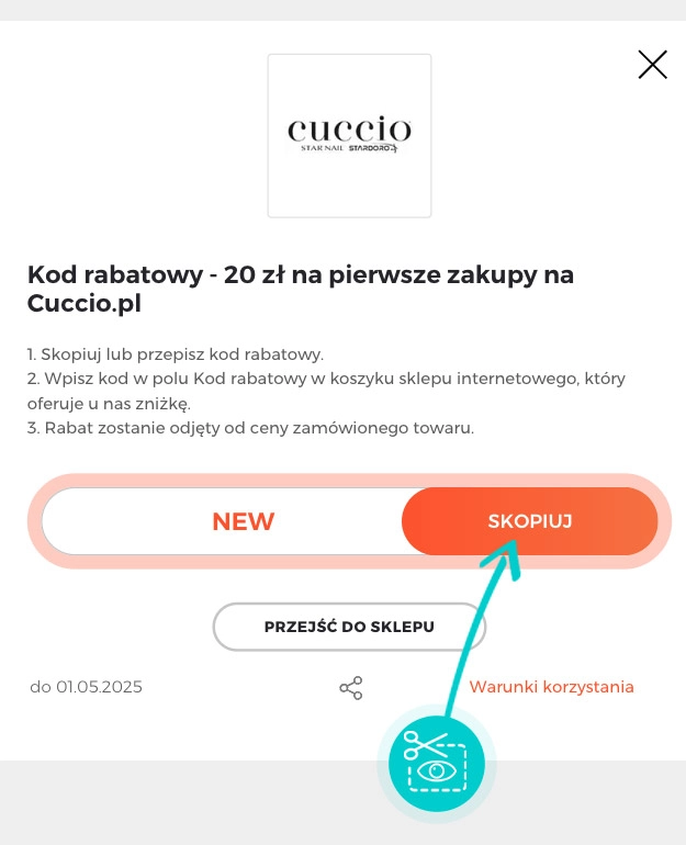 Skopiuj lub zapisz kod rabatowy, a następnie kliknij przycisk "Przejdź do sklepu". Zostaniesz automatycznie przekierowany do sklepu internetowego Cuccio.pl.