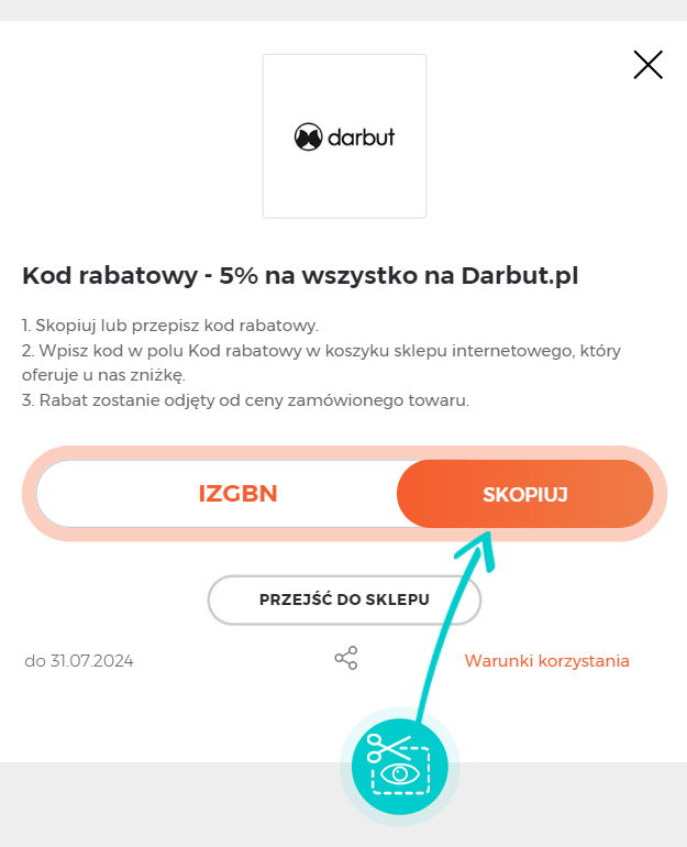 Skopiuj lub zapisz kod rabatowy, a następnie kliknij przycisk "Przejdź do sklepu". Zostaniesz automatycznie przekierowany do sklepu internetowego Darbut.pl.
