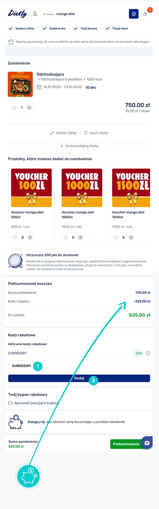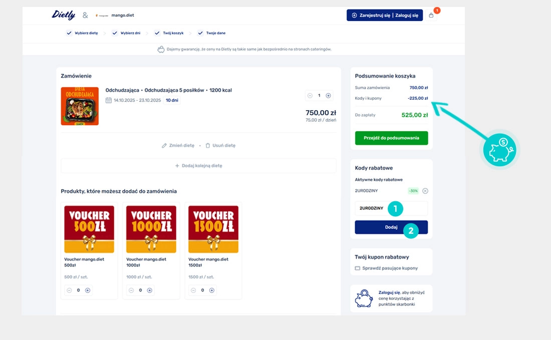 Nie wiesz dokładnie, jak działają kody rabatowe na Dietly.pl? Oto jak szybko i łatwo zastosować kody rabatowe podczas dokonywania zakupu: