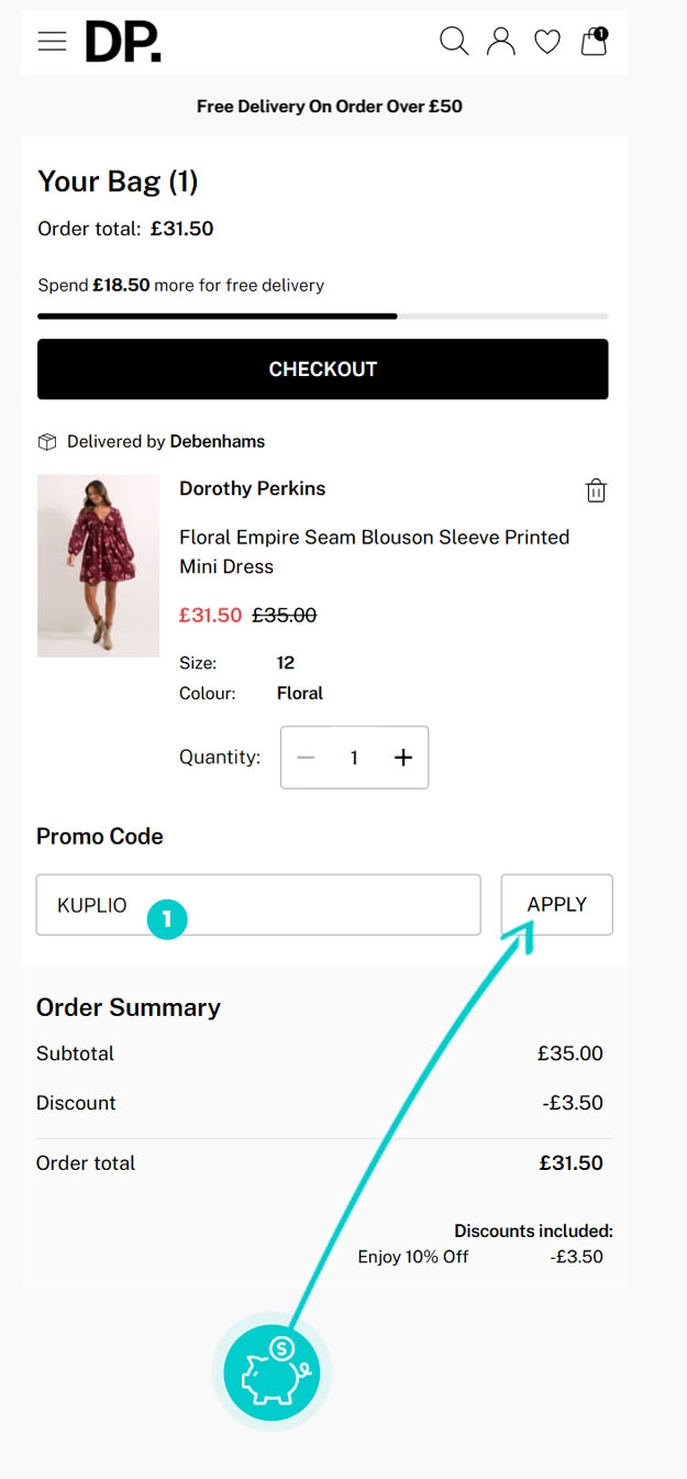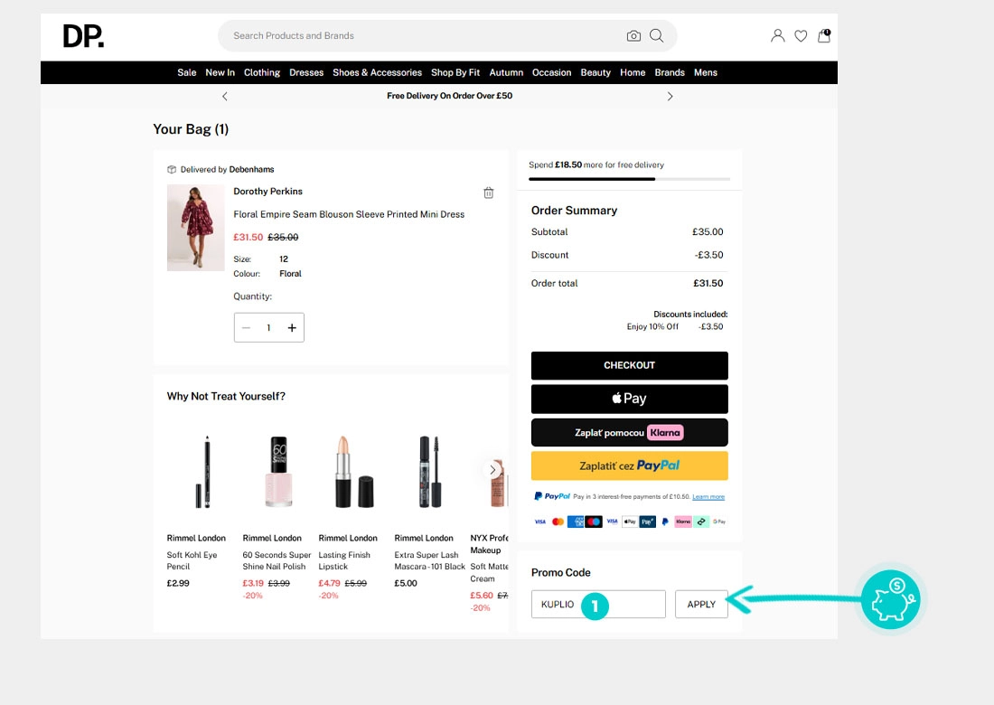 Nie wiesz dokładnie, jak działają kody rabatowe na Dorothyperkins.com? Oto jak szybko i łatwo zastosować kody rabatowe podczas dokonywania zakupu:
