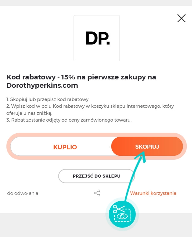 Skopiuj lub zapisz kod rabatowy i kliknij przycisk "Przejdź do sklepu". Nastąpi przekierowanie bezpieśrednio do sklepu internetowego Dorothyperkins.com.