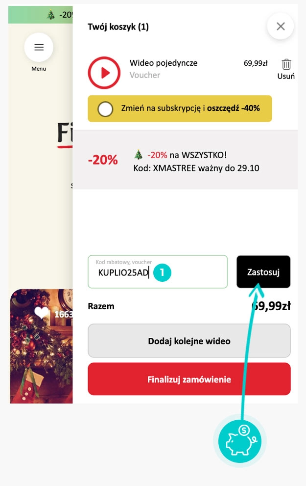 Wybierz produkt w e-sklepie Elfi.pl który Cię interesuje, naciśnij przycisk "Kup", a produkt zostanie automatycznie dodany do koszyka. Bezpośrednio w koszyku znajdziesz pole „Kupon podarunkowy lub rabatowy” pod wybranym produktem. Wpisz tutaj skopiowany kod rabatowy lub wprowadź go ręcznie i potwierdź przyciskiem „Zastosuj”.