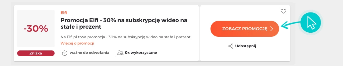 Wysokość rabatu: -30%Na Elfi.pl trwa promocja - 30% na subskrypcję wideo na stałe i prezent. Sprawdź i kupuj taniej.