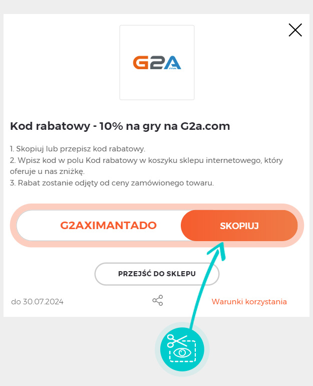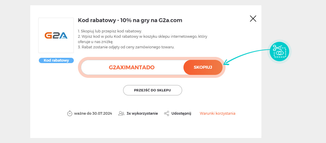 Skopiujcie lub zapiszcie kod rabatowy, a następnie kliknijcie przycisk "Przejdź do sklepu". Zostaniecie automatycznie przekierowani do sklepu internetowego G2a.com.