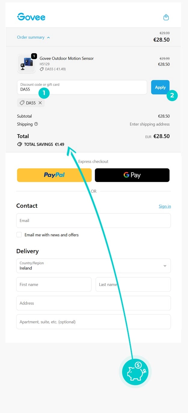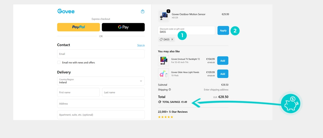 Nie wiesz dokładnie, jak działają kody rabatowe na Eu.govee.com? Oto jak szybko i łatwo zastosować kody rabatowe podczas dokonywania zakupu: