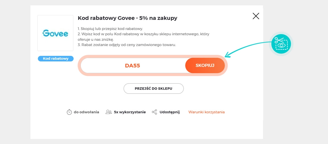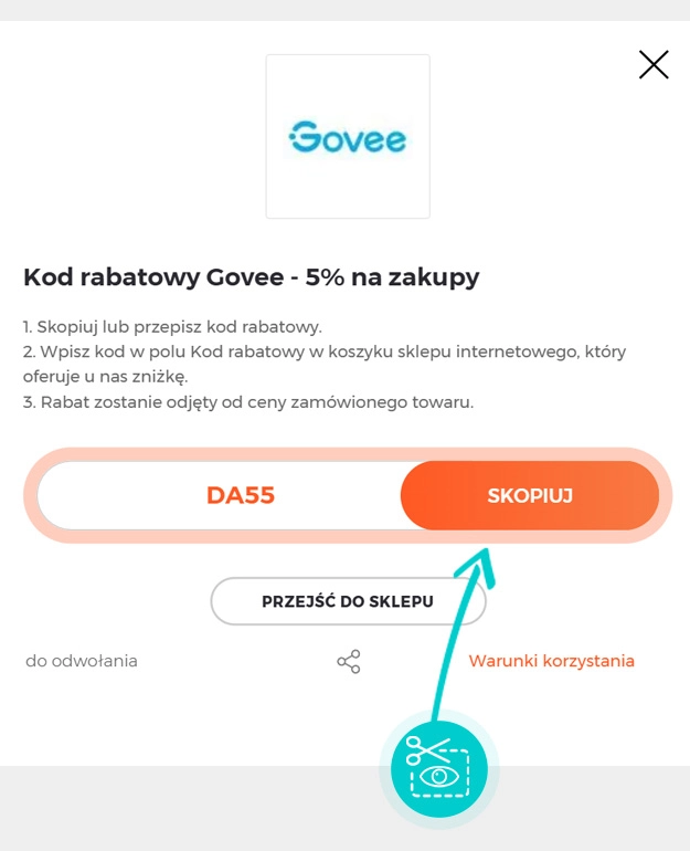 Skopiuj lub zapisz kod rabatowy i kliknij przycisk "Przejdź do sklepu". Nastąpi przekierowanie bezpieśrednio do sklepu internetowego Eu.govee.com.