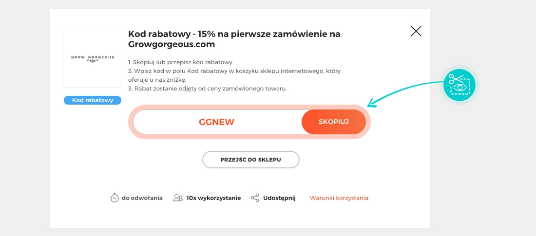 Wybierz na naszej stronie określony kod rabatowy, który chcesz zastosować w sklepie internetowym Growgorgeous.com. Kliknij pomarańczowy przycisk „Wyświetl kod”.