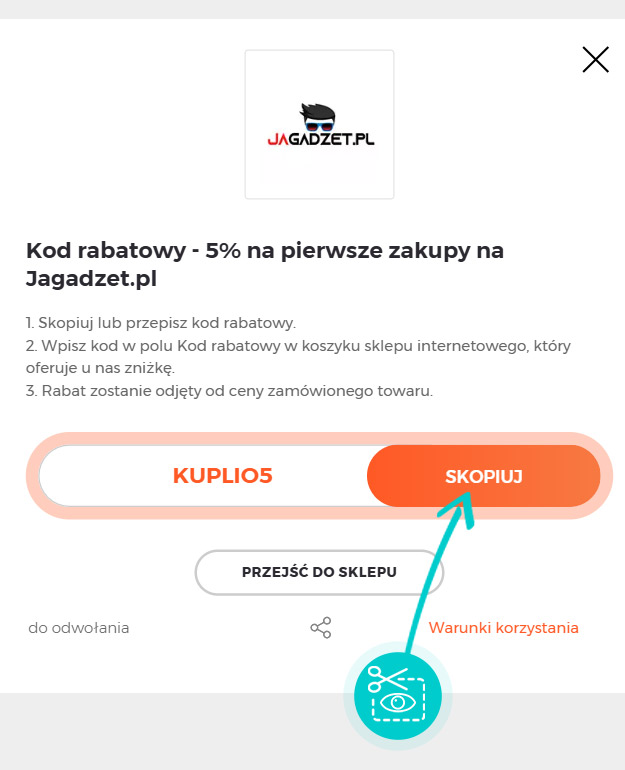 Skopiuj lub zapisz kod rabatowy, a następnie kliknij przycisk "Przejdź do sklepu". Zostaniesz automatycznie przekierowany do sklepu internetowego JaGadzet.