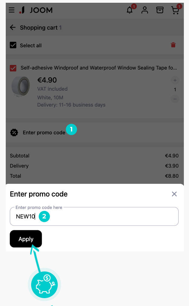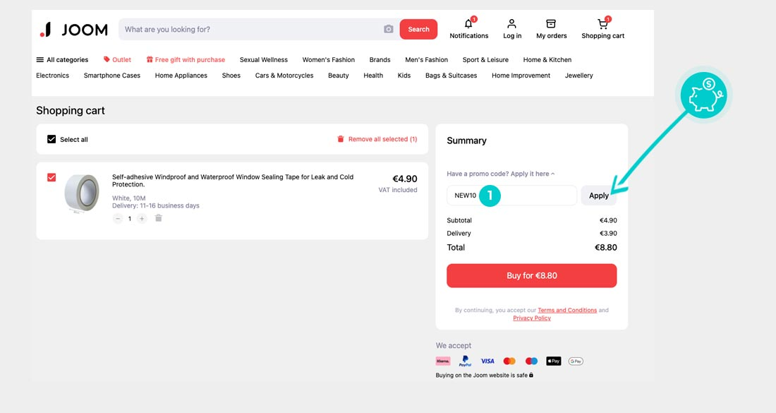 Nie wiesz dokładnie, jak działają kody rabatowe na Joom.com? Oto jak szybko i łatwo zastosować kody rabatowe podczas dokonywania zakupu: