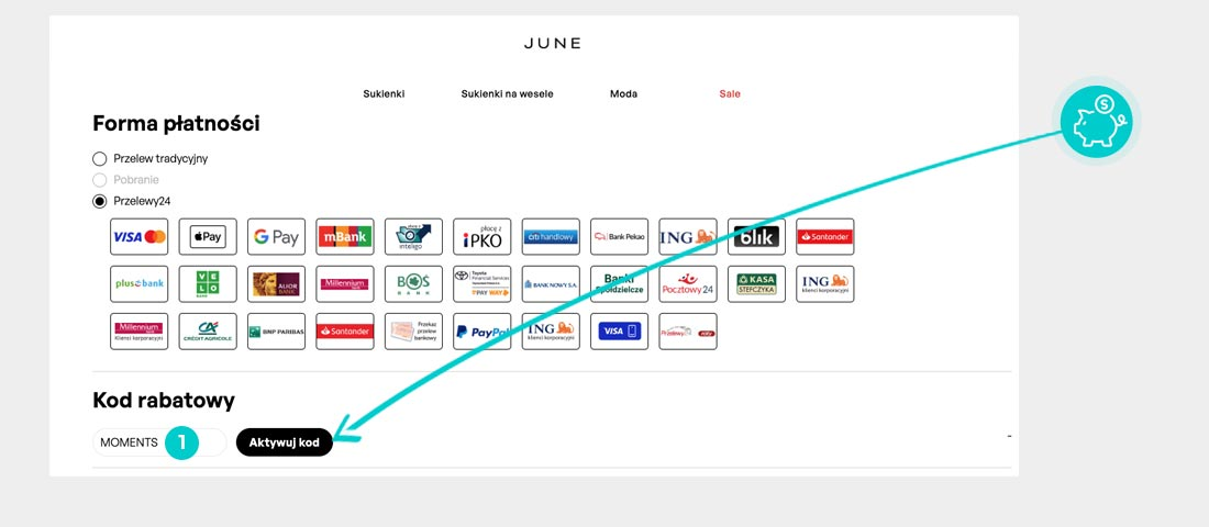 Nie wiesz, jak dokładnie działają kody rabatowe na June? Przedstawiamy Ci krótką instrukcję, dzięki której możesz łatwo i szybko użyć kodów rabatowych podczas dokonywania zakupów: