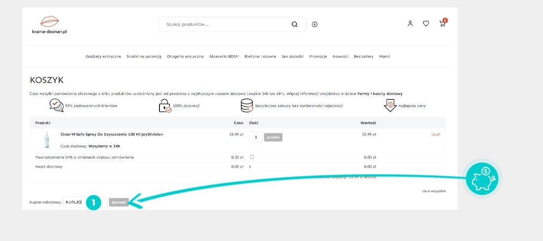 Nie wiesz dokładnie, jak działają kody rabatowe na Kraina-doznan.pl? Oto jak szybko i łatwo zastosować kody rabatowe podczas dokonywania zakupu: