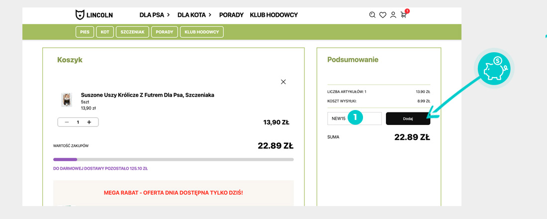 Nie wiesz dokładnie, jak działają kody rabatowe na Lincolnpetfood.pl? Oto jak szybko i łatwo zastosować kody rabatowe podczas dokonywania zakupu: