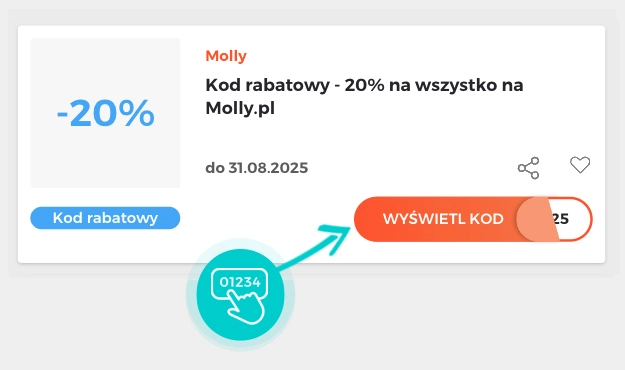 Kod rabatowy - 20% na wszystko na Molly.pl po wpisaniu kodu. Nie czekaj. Skorzystaj z oferty już dziś.