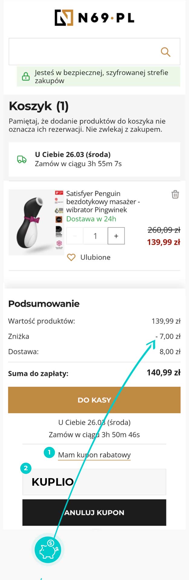 Czytaj więcej ...Nie wiesz dokładnie, jak działają kody rabatowe na N69.pl? Oto jak szybko i łatwo zastosować kody rabatowe podczas dokonywania zakupu: