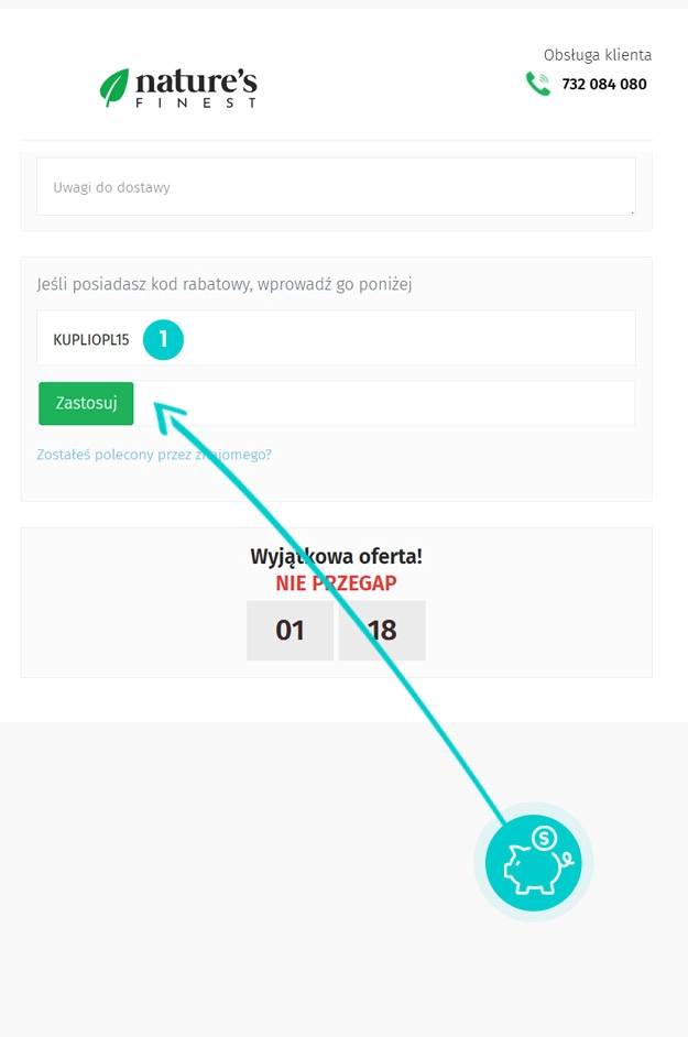 Nie wiesz dokładnie, jak działają kody rabatowe na Naturesfinest.pl? Oto jak szybko i łatwo zastosować kody rabatowe podczas dokonywania zakupu: