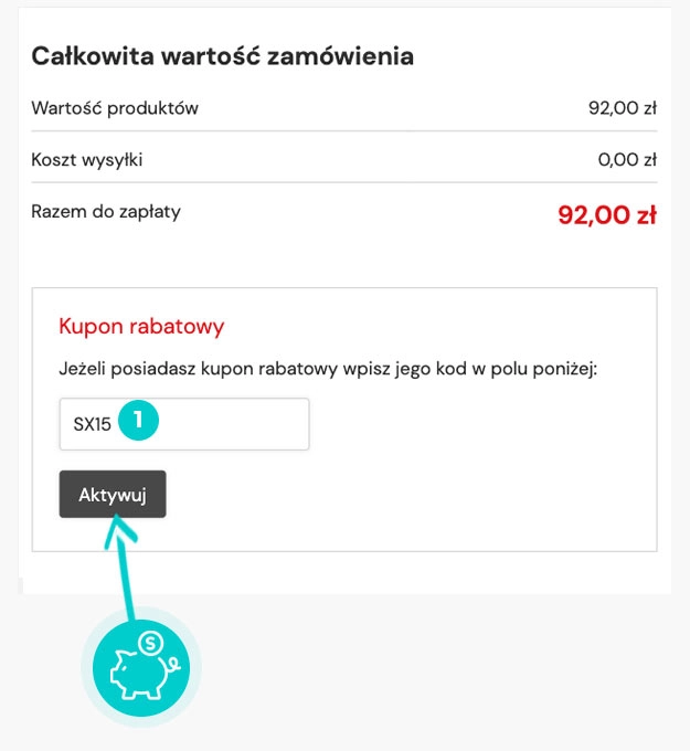 Wybierz produkt w e-sklepie Ogrodzenia24.eu który Cię interesuje, naciśnij przycisk "Kup", a produkt zostanie automatycznie dodany do koszyka. Bezpośrednio w koszyku znajdziesz pole „Kupon podarunkowy lub rabatowy” pod wybranym produktem. Wpisz tutaj skopiowany kod rabatowy lub wprowadź go ręcznie i potwierdź przyciskiem „Zastosuj”.