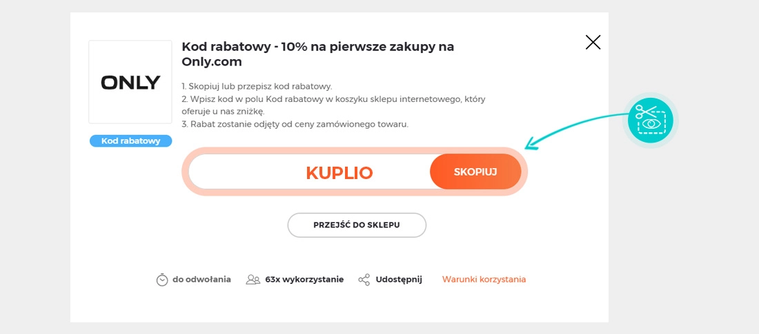 Skopiujcie lub zapiszcie kod rabatowy, a następnie kliknijcie przycisk "Przejdź do sklepu". Zostaniecie automatycznie przekierowani do sklepu internetowego Only.com.