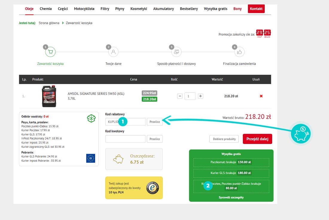 Nie wiesz dokładnie, jak działają kody rabatowe na Petrostar.pl? Oto jak szybko i łatwo zastosować kody rabatowe podczas dokonywania zakupu: