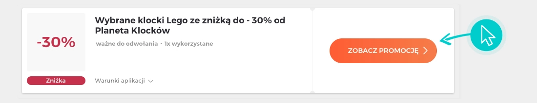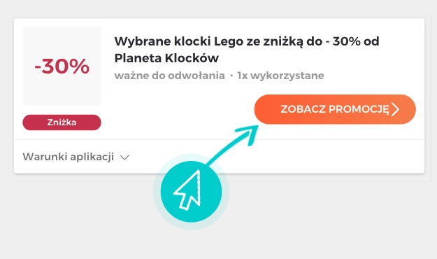 Wybierzcie konkretny rabat z Planeta Klocków na naszej stronie i kliknijcie przycisk "Zobacz promocję". Zostaniecie automatycznie przekierowani do oferty promocyjnej w sklepie internetowym Planetaklockow.pl, gdzie możecie kupić wybrany produkt ze świetną zniżką.