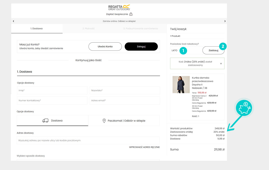 Nie wiesz dokładnie, jak działają kody rabatowe na Regatta.com? Oto jak szybko i łatwo zastosować kody rabatowe podczas dokonywania zakupu: