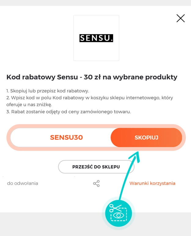 Skopiuj lub zapisz kod rabatowy i kliknij przycisk "Przejdź do sklepu". Nastąpi przekierowanie bezpieśrednio do sklepu internetowego Sensu.pl.