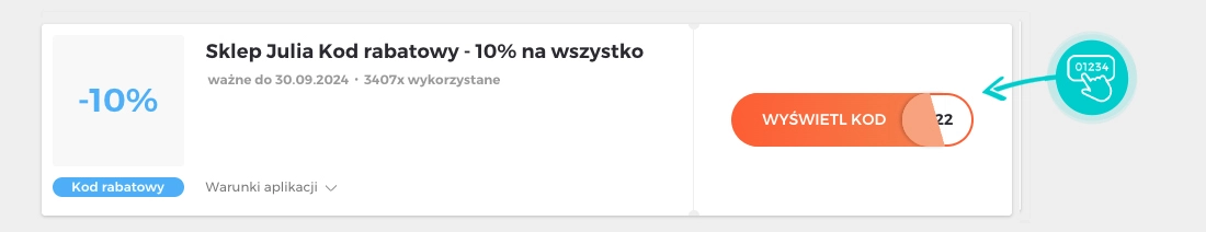 Wybierz na naszej stronie konkretny kod rabatowy, którego chcesz użyć w sklepie internetowym Sklep-julia.pl. Następnie kliknij pomarańczowy przycisk "Wyświetl kod".
