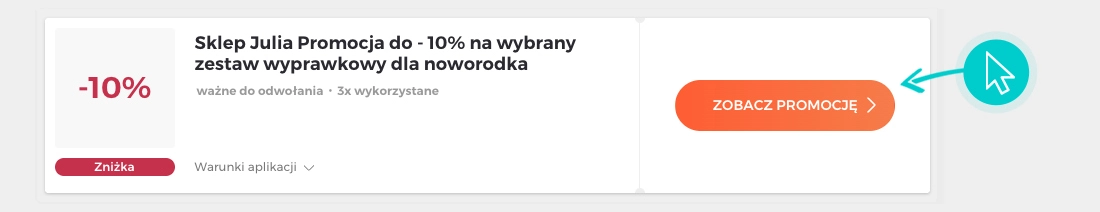Wybierz konkretny rabat z Sklep Julia na naszej stronie i kliknij przycisk "Zobacz promocję". Zostaniesz automatycznie przekierowany do oferty promocyjnej w sklepie internetowym Sklep-julia.pl, gdzie możesz kupić wybrany produkt ze świetną zniżką.