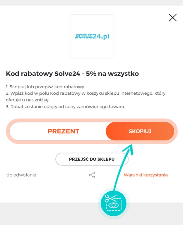 Skopiuj lub zapisz kod rabatowy i kliknij przycisk "Przejdź do sklepu". Nastąpi przekierowanie bezpieśrednio do sklepu internetowego Solve24.pl.