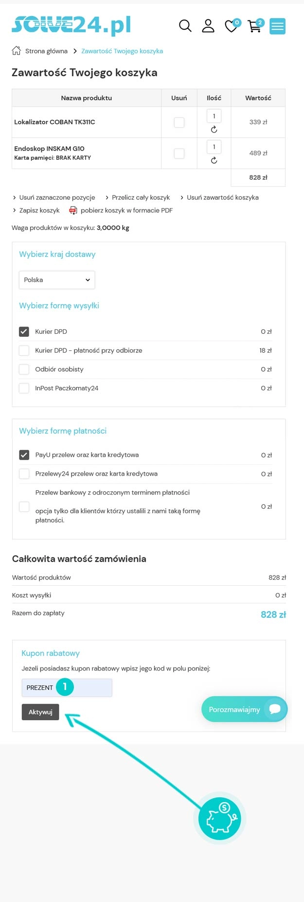 Wybierz produkt w e-sklepie Solve24.pl który Cię interesuje, naciśnij przycisk "Kup", a produkt zostanie automatycznie dodany do koszyka. Bezpośrednio w koszyku znajdziesz pole „Kupon podarunkowy lub rabatowy” pod wybranym produktem. Wpisz tutaj skopiowany kod rabatowy lub wprowadź go ręcznie i potwierdź przyciskiem „Zastosuj”.