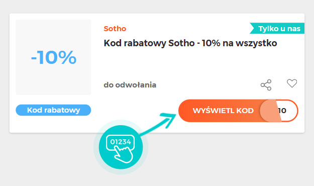 Wybierzcie konkretny rabat z Sotho na naszej stronie i kliknijcie przycisk "Zobacz promocję". Zostaniecie automatycznie przekierowani do oferty promocyjnej w sklepie internetowym Sotho.pl, gdzie możecie kupić wybrany produkt ze świetną zniżką.