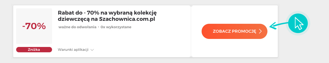 Wybierz konkretny rabat Szachownica na naszej stronie i kliknij przycisk "Zobacz promocje". Zostaniesz automatycznie przekierowany bezpośrednio do oferty specjalnej w sklepie internetowym Szachownica.com.pl, w którym możesz kupić produkt ze zniżką.