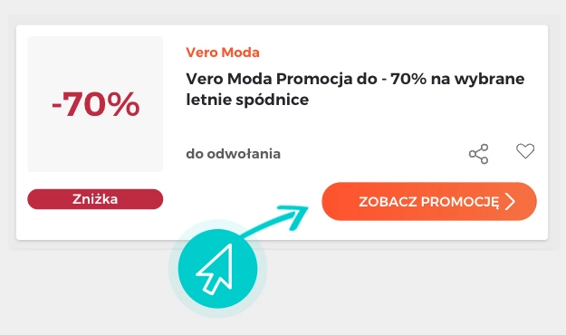 Wybierz konkretny rabat z Vero Moda na naszej stronie i kliknij przycisk "Zobacz promocję". Zostaniesz automatycznie przekierowany do oferty promocyjnej w sklepie internetowym Veromoda.com, gdzie możesz kupić wybrany produkt ze świetną zniżką.
