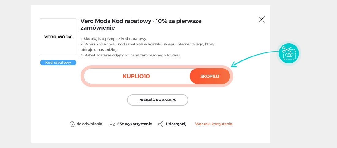 Skopiuj lub zapisz kod rabatowy, a następnie kliknij przycisk "Przejdź do sklepu". Zostaniesz automatycznie przekierowany do sklepu internetowego Veromoda.com.