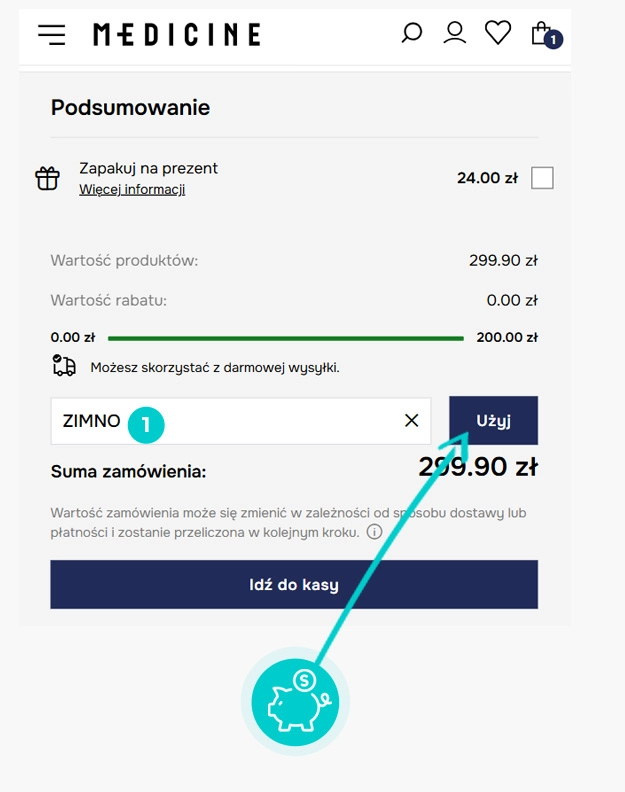 Nie wiesz dokładnie, jak działają kody rabatowe na Wearmedicine.com? Oto jak szybko i łatwo zastosować kody rabatowe podczas dokonywania zakupu: