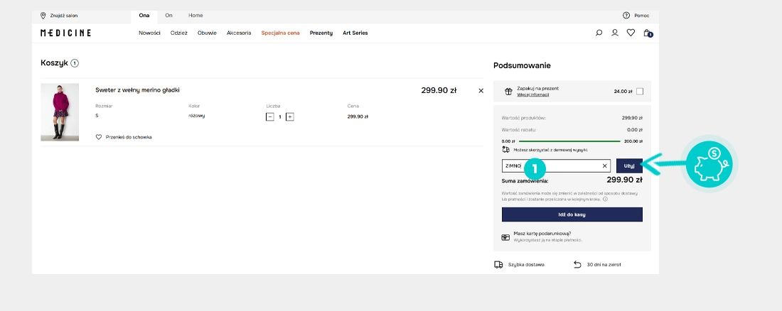 Przy zakupach o wartości minimalnie 100 PLN, przysługuje Ci darmowa dostawa. Medicine kod rabatowy o wysokości aż – 40% zyskasz na ubrania i dodatki. Warto sprawdzać na Kuplio aktualne kody rabatowe, ponieważ czasem wydają się być lepszą opcją niż skorzystanie z kategorii Sale. Udanych łowów!