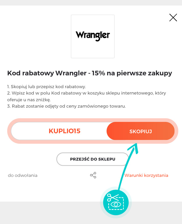 Skopiuj lub zapisz kod rabatowy i kliknij przycisk "Przejdź do sklepu". Nastąpi przekierowanie bezpieśrednio do sklepu internetowego Eu.wrangler.com.